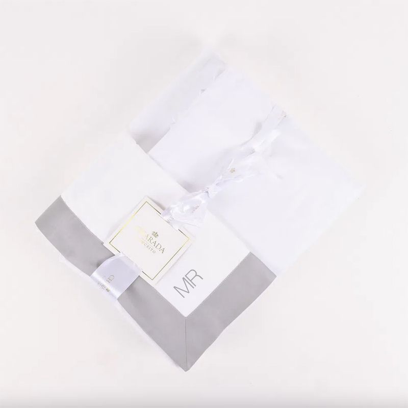 Jogo de Lençol 600 Fios Barrado Cinza Cimento